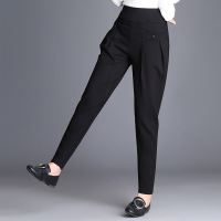 束脚哈伦裤长裤新款秋宽松大码休闲裤韩版高腰黑色小脚裤子黑色