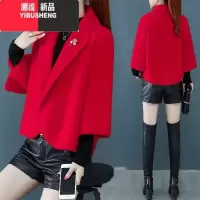 YIBUSHENG2022季新款外搭披肩休闲小西装洋气减龄开衫短款毛呢外套女