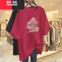 YIBUSHENG粉色t恤女短袖宽松2024新款季欧货大版字母中长款半袖上衣