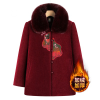 奶奶毛呢外套女士老年人新款冬装加绒加厚翻领上衣妈妈新中式呢子