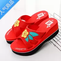 SUNTEK拖鞋女士坡跟凉拖鞋夏季外穿高跟鞋家用家居泡沫厚底红色洗澡拖鞋