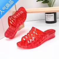 SUNTEK高跟坡跟低跟透气防滑防水女水晶拖鞋 透明浴室红色中年妈妈凉拖