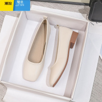 聚范工作鞋女大码黑色方头平底工装职业上班面试空姐舒适软底单鞋