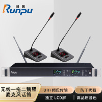 润普Runpu会议音频扩声系统 真分集+UHF桌面式方杆专业无线一拖二红外对频鹅颈麦克风话筒RP-SU102F