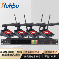 润普Runpu会议音频扩声系统 真分集+UHF桌面式方杆专业无线一拖四红外对频鹅颈麦克风话筒RP-SU104FG