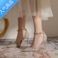 SUNTEK一字扣带高跟凉鞋女2023新款春尖头柳丁包头细跟铆钉时装性感单鞋