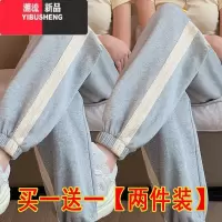 YIBUSHENG灰色运动裤女春2024新款宽松条纹复古休闲卫裤小个子阔腿裤子