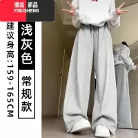 YIBUSHENG灰色运动裤女春2024新款宽松阔腿裤小个子美式休闲直筒卫裤子