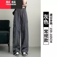 YIBUSHENG灰色工装裤女春2024新款高腰阔腿宽松休闲显瘦小个子美式运动裤