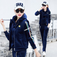运动套装女2017秋冬新款双面绒加绒加厚马甲韩版金丝绒卫衣三件套
