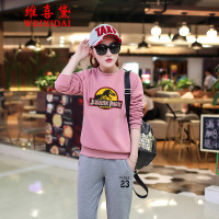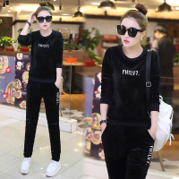 金丝绒运动服套装2017冬季加绒加厚圆领简约字母图案两件套女