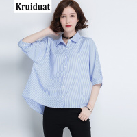 Kruidvat2017春夏季新款宽松竖条纹中袖衬衣Z002 蓝 均码