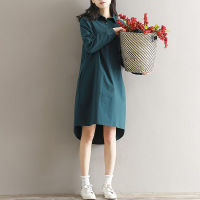 YIBUSHENG2024年季女士棉绸连衣裙宽松显瘦衬衣领气质大摆裙人造棉沙滩裙