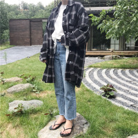 2017新款秋季韩国百搭复古格子翻领长袖衬衣外套宽松显瘦中长款衬衫上衣女