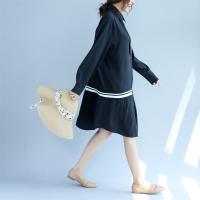 胖mm秋季宽松衬衣女文艺大码拼接全棉黑色显瘦中长款长袖连衣裙潮