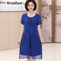 Kruidvat2017夏季新款中长款印花短袖大摆雪纺连衣裙女妈妈装LSN