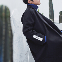 双面呢羊毛大衣风衣男式宽松长款双排扣青年潮流毛呢大衣