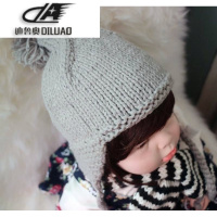 秋冬1-3岁宝宝儿童加厚护耳毛线帽子韩版毛球帽婴幼儿保暖套头帽