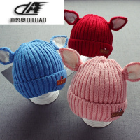 秋冬3个月-3岁宝宝儿童帽子加厚毛线帽贴标耳朵帽子婴幼儿套头帽