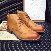新款英伦时尚潮男士高帮靴商务休闲鞋韩版布洛克马丁靴