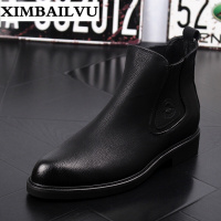 品牌男短靴高帮黑色皮鞋切尔西内增高马丁靴韩版休闲厚底秋冬短靴简约百搭舒适透气高帮靴S950