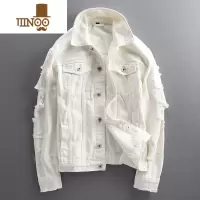 YANXU破洞牛仔外套男韩版潮流修身高街痞帅上衣服休闲白色牛仔夹克