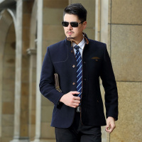 春秋西服羊毛呢子大衣男短款中青年男士西装外套单西春秋单西修身外套西服西装大衣男西装领中青年冬季商务休闲短款毛呢子外套