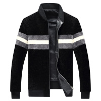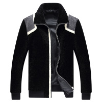 不满意包退新款男式新款羊毛呢外套立领修身拼色短款羊剪绒外套黑色