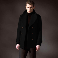 走秀青年羊毛呢大衣男士设计双排扣大翻领呢子外套短款黑色优雅绅士
