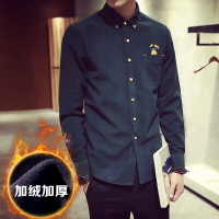 步来褶惠2017男士加绒衬衫韩版修身灯芯绒冬季加厚日系绣花长袖衬衣男装夏