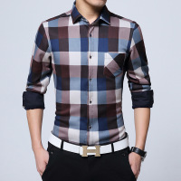 UYUK冬季加绒衬衫2017装新款保暖棉衬衫青年潮流男士长袖格子加绒加厚商务衬衣