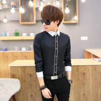 UYUK 秋冬季2017时尚新款男士商务休闲长袖衬衫插色假口袋衬衣修身上衣
