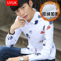 有衣有靠加绒衬衣男秋冬季男士修身商务休闲大码长袖衬衫加绒加厚男潮流休闲职业印花衬衫打底衫