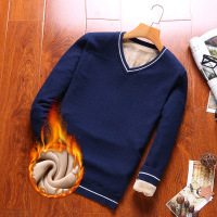 秋冬17新款男士加绒加厚毛衣韩版修身V领针织衫套头毛衫