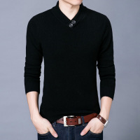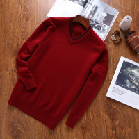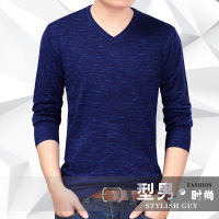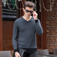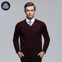 2017秋冬鸡心领青年毛衣男中青年V领纯羊毛衫男加厚针织衫纯色