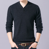 秋冬新款男装纯羊毛衫V领男士山羊衫加厚毛衣鸡心领羊绒衫毛衣潮