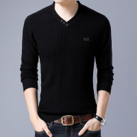 冬装新款羊毛衫男加厚V领毛衣男纯色青年韩版针织衫男打底衫中年
