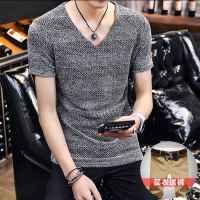 丹杰仕 2016主推V领打底衫修身男士短袖T恤镂空搭配休闲长裤套装小咖秀百搭潮9296