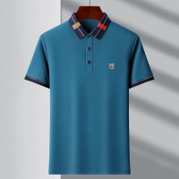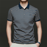 春夏新款男士短袖T恤简约翻领青年休闲条纹透气舒适长绒棉男装