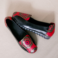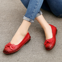 复古妈妈鞋女真皮平底防滑软底休闲百搭平跟单鞋女民族风女鞋春秋