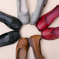 复古女鞋真皮软底防滑平跟韩版妈妈鞋浅口平底文艺百搭手工单鞋女