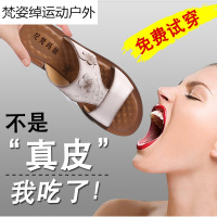 新款凉拖鞋女平底真皮妈妈鞋夏季软底平跟中老年女鞋沙滩鞋皮凉拖