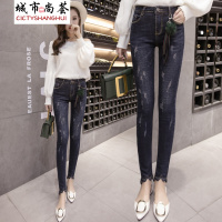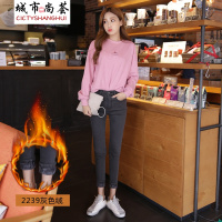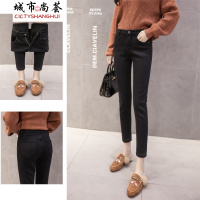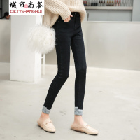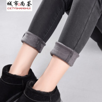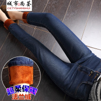 女裤加绒牛仔裤女高腰冬季小脚加厚保暖新款女士铅笔裤蓝色