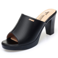 高跟粗跟凉拖鞋女夏新款厚底防水台露趾大码妈妈鞋时尚拖鞋