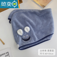 敬平2021新款干发帽吸水速干浴帽洗头擦头发毛巾女可爱加厚包头巾 立体怪-雾霾蓝