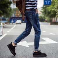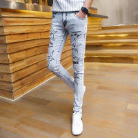 莞馨(wanxin)新款青少年牛仔裤男新款秋冬修身小脚裤潮男个性字母刺绣显瘦牛仔裤男