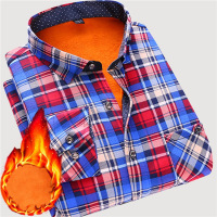 莞馨(wanxin)新款秋冬季青年保暖长袖衬衫男加肥加大码男装格子衬衣韩版加绒加厚冬