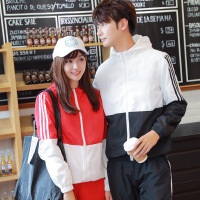 莞馨(wanxin)新款2016秋款情侣装学院风拼接连帽风衣运动服套装青少年外套男女班服