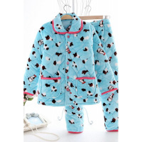 锦铭七玥冬季儿童卡通睡衣套装宝宝加绒女孩两件套冬装男童居服潮
