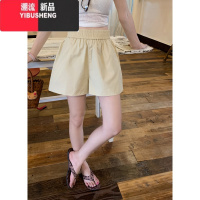 YIBUSHENG卡其色速干短裤女季薄款高腰显瘦宽松休闲阔腿裤子肌理感运动裤